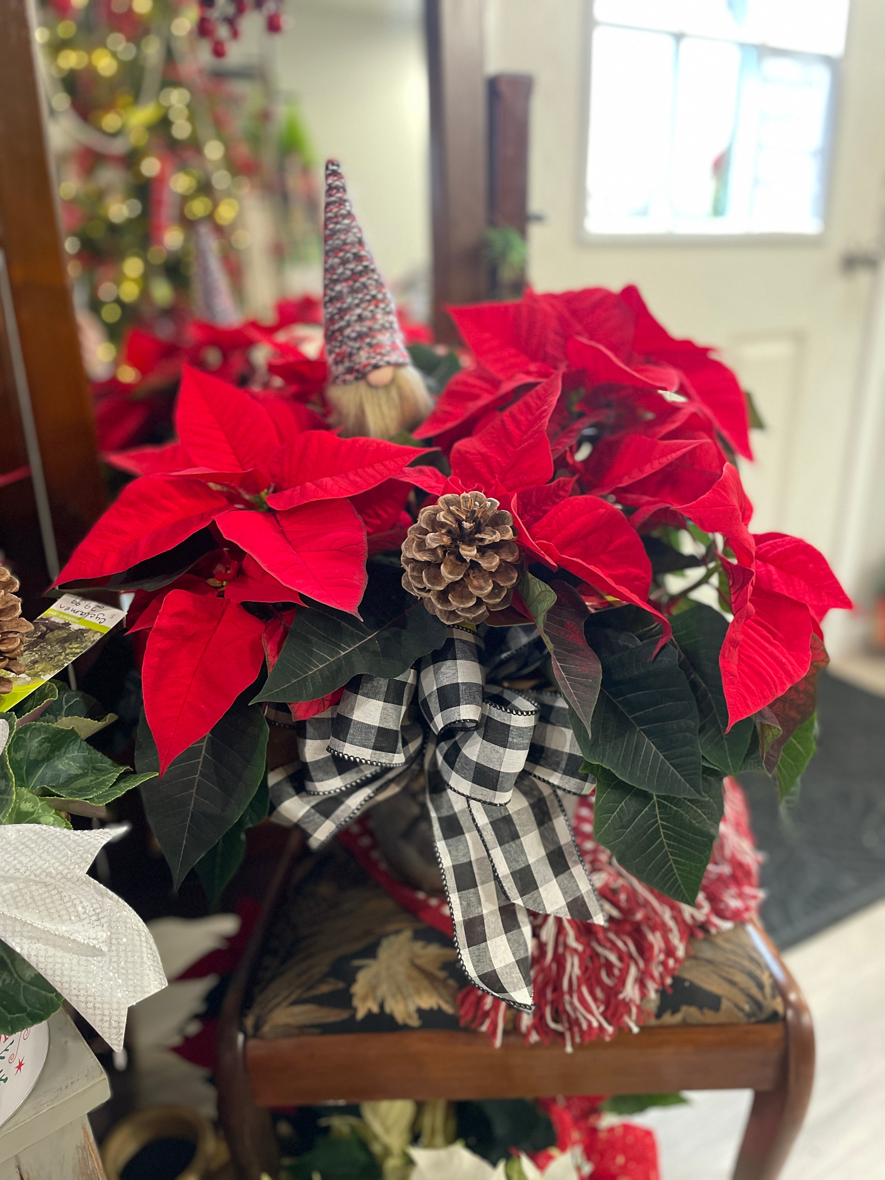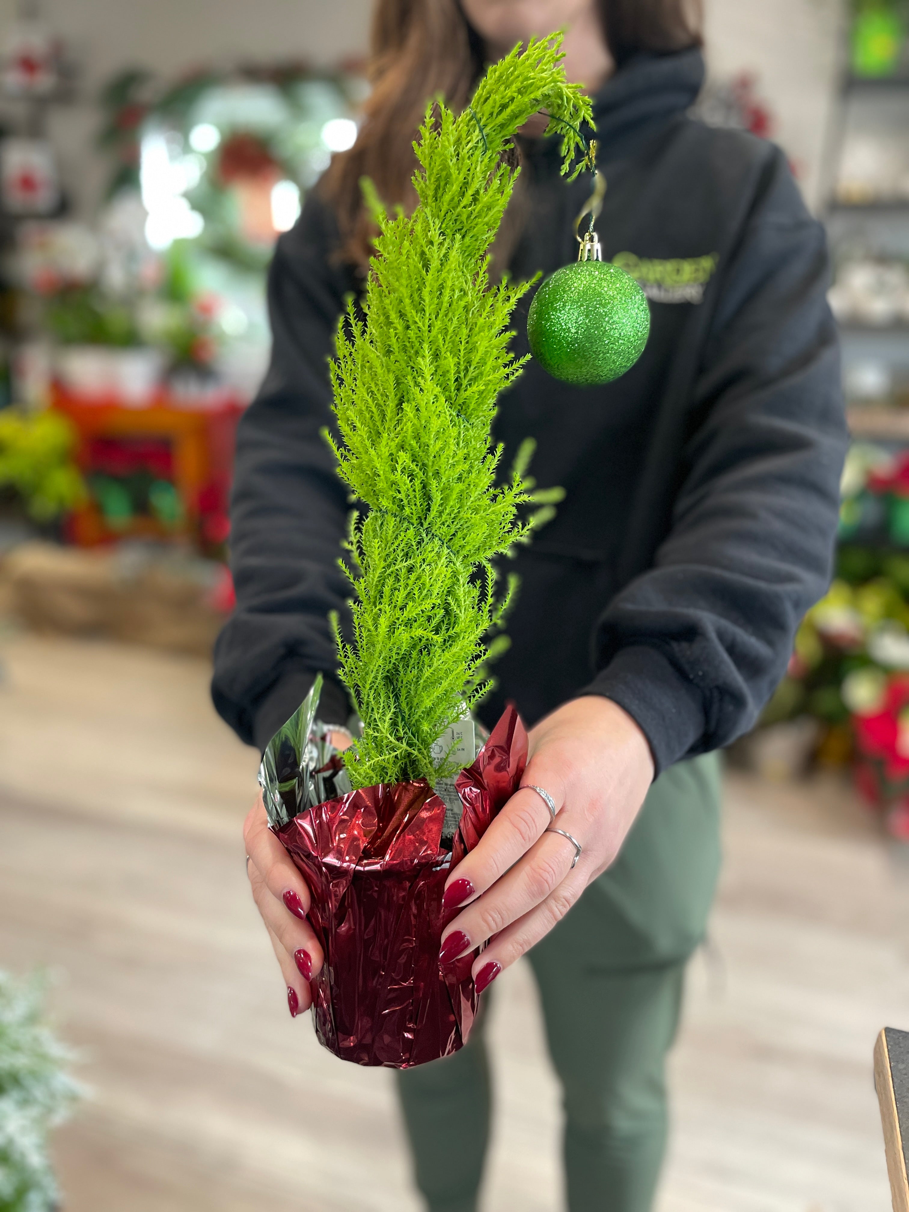 We carry a beautiful selection of seasonal indoor plants, all grown locally or in Ontario. From poinsettias and Christmas cactus to lemon cypress and Norfolk Island pine, you’ll find both simple options and fully decorated, gift-ready arrangements in-store.