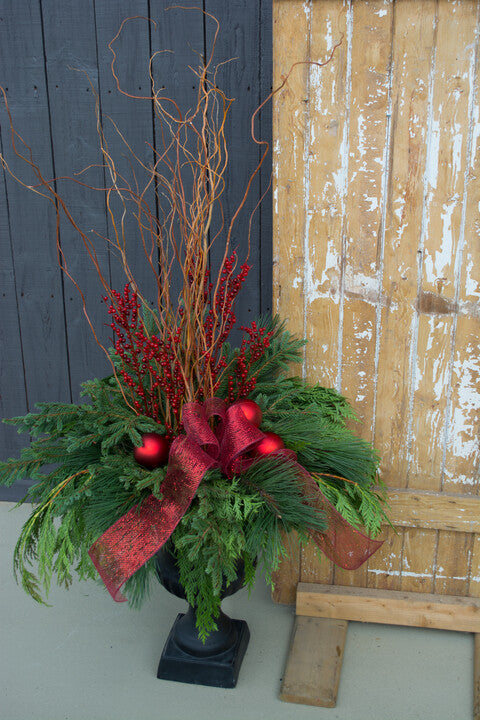Spend a festive evening with us creating your own Evergreen Elegance Traditional Urn on Thursday, November 13th from 6:30-8pm. Our experienced designers will guide you step-by-step in arranging locally grown winter greenery, dogwood, berries, and pinecones into a beautiful urn that will bring holiday charm to the front of your home all season long.